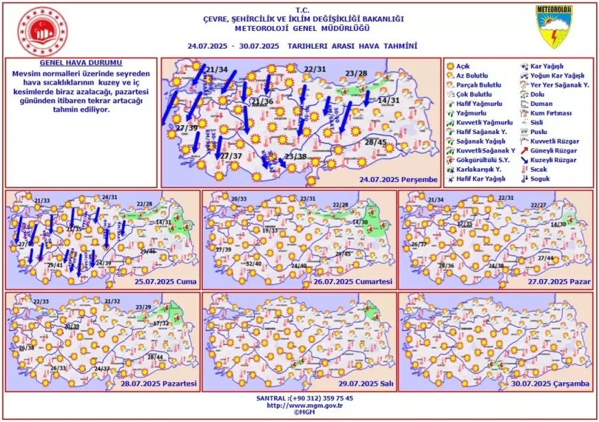Sıcak hava dalgası sadece İstanbul'u değil, tüm yurdu etkisi altına almış durumda. Meteoroloji'nin tahminlerine göre yurt genelindeki hava durumu şu şekilde öngörülüyor: